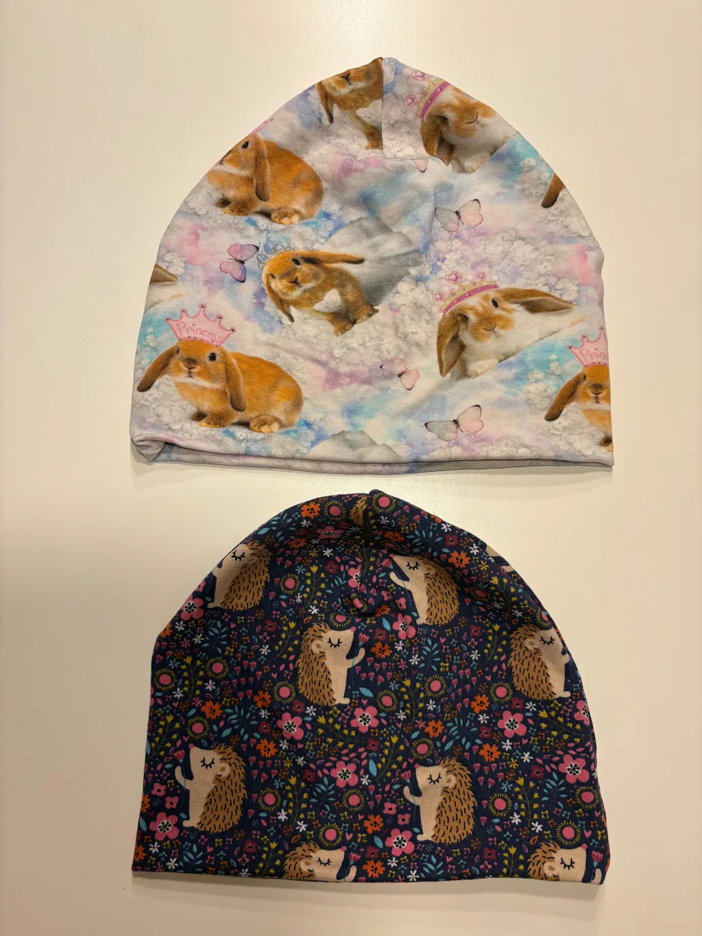 Välj storlek baserat på barnets eller den vuxnes huvudomfång. Exempelvis, om huvudomfånget är 53 cm, välj storlek 54. Till detta symönster rekommenderar jag trikåtyg (ex. jersey och college) med 40% stretch (använd gärna stretchguiden i mönstret).