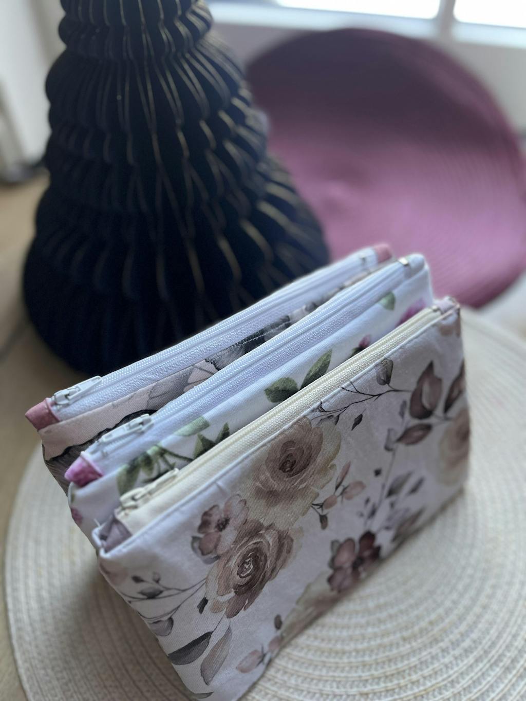 - Påstrykbart mellanlägg (ej med stretch), för mer stabilitet. Stryk fast på avigsidan av yttertyget, och även fodret om du vill att även insidan ska ha lite stabilitet (extra bra i modell B och C). Mellanlägg är inte nödvändigt, men det ger en mycket snyggare finish, särskilt om dina valda tyger inte är särskilt kraftiga och stabila. Det behövs inte mellanlägg på blixtlåsflikarna (modell A/B) och flärparna (modell C). Du kan använda mellanlägg på handtaget (modell C) om du vill.